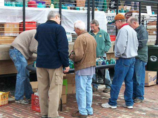 Everybody gathering around Jason Stevens table as he empties the boxes of glass :)