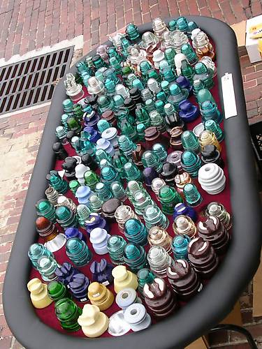 This table of goodies was usually surrounded by eager buyers and other onlookers. There were only two things that drew the folks away from the tables, the passage of another train, and lunchtime. I took advantage of the latter to snap this uncrowded overhead photo. |