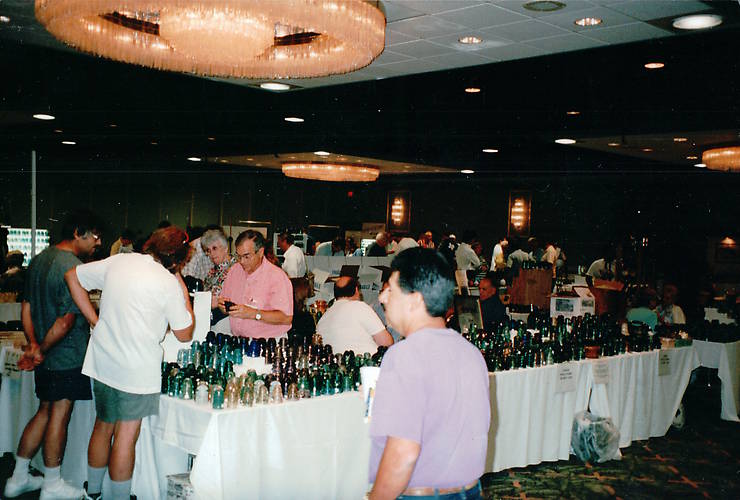 That's Dick and Ev Bowman manning the table at the end and it looks like Ross Baird is talking glass with Dick as Ev seems interested in something happening off camera. Kevin Lawless is talking to someone nearby while one of the Plunketts looks on. Dave Hall is the one wandering past in the foreground. |