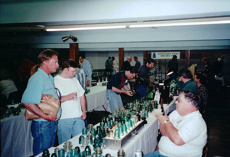 Taken at the now-gone VFW that was sandwiched between the airport and Mall of America. Gary Senum and Colin Yennie are discussing something while Joel Anderson is scrutinizing a possible addition to his collection. Michael Harders is browsing along the next table down from Joel. |
