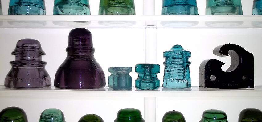 Well, I guess I can kind of call these yard sale finds. I saw an ad for a yard sale that mentioned insulators. Rarely does a garage sale ad include a number, but this time it did. The guy explained to me that he had a few for sale, but he had some others that he wanted to save, but would probably sell since I'm a collector. I drove the hour drive to go see him, and it turns out he is an old collector who was very active back in the 80's and 90's and was even a member of Dixie Jewels Ins. Club. I bought a bunch from him, and he was nice enough to give me first shot at everything even though there was an antique dealer there looking over my shoulders waiting to snap up everything I didn't want. Needless to say, I took as much as I could, since it will all hold a very nice spot in my collection. This picture shows some of the better pieces that I picked up. A nice strong purple 154 Tatum, an unusually dark AGEE bell with tons of little seed bubbles and even a few small rocks, two glass knobs and a blue spool, a 106.1 Duquesne, and a porcelain cutter in very nice condition. See the next pics for more. |