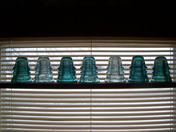 This collection of H.G.CO. Smooth Base and Single Drip Points plus One W. Brookfield, Smooth Base was found on one old rail line last year on a few * Hunts * that I and my wife made through the summer and fall. Was amazed at how many different variations of the color Aqua and Tinted Clear that we found. |