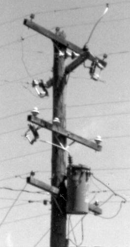 I took this old photo years ago of the gray Victor M-2140 multiparts in use by PGE near Forest Grove, OR., as mentioned in the previous photo. They were installed around 1935 on this 12.5kV power line and lasted until sometime in the 1960's or 70's. Some are still in service on another line. |