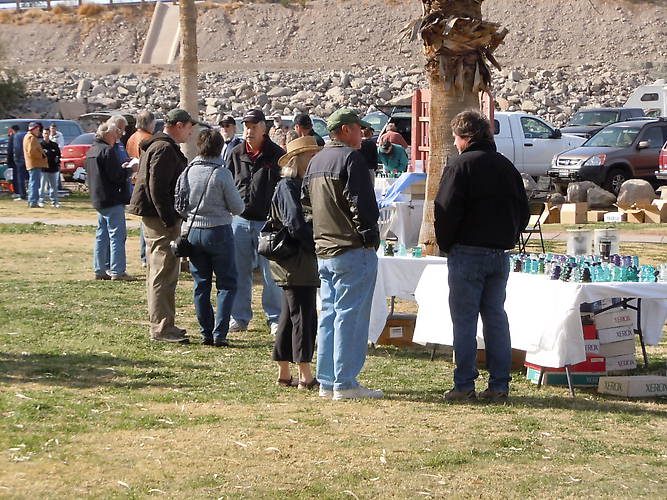 Dan Gauron and John McDougald having deep discussions with collectors about color, CDs, embossings, etc.