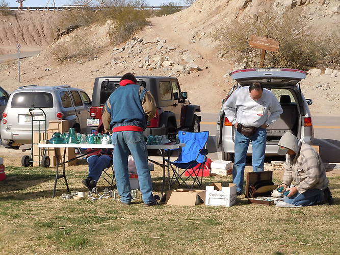 James Doty on the right showing Don B. his collection of WESTINGHOUSE NO. 3 insulators. New color being considered for new PG.