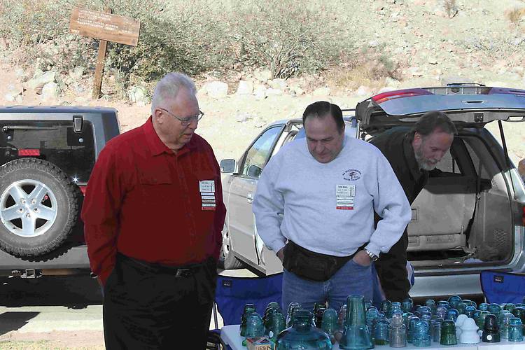 Lou Hall and Don Briel discuss politics while Roger Nagel looks for the good deals.