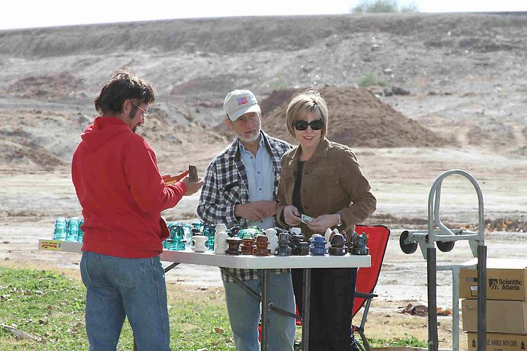 Ann Evans cons Tom Katonak into buying her entire table of insulators! John Contrares looks on in amazement...