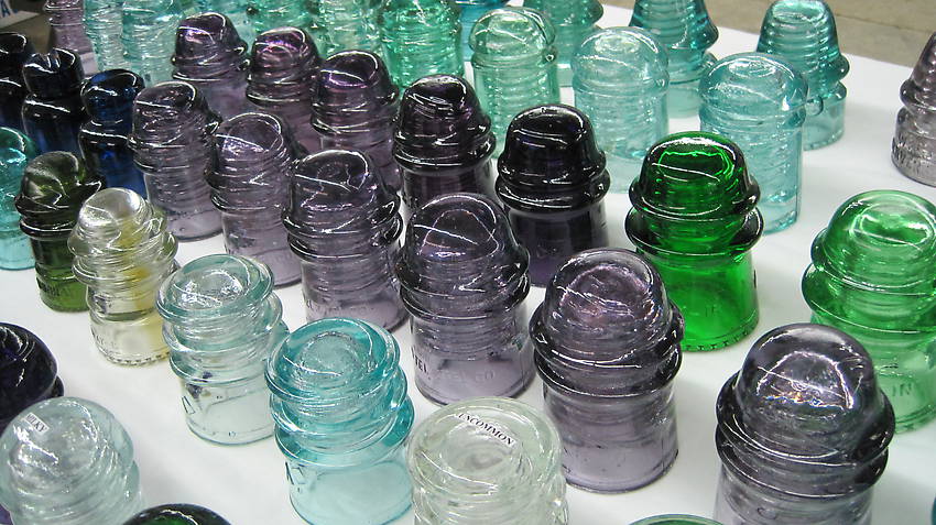Ken Roberts always has a great variety of insulators to choose from at our DJIC swaps. Here is a shot of the rows of purple pieces he had to offer.