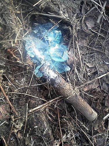 This CD 145 "B" embossed Brookfield has a terminal case of FUBAR. The Buffalo & Pittsburgh Railroad has removed many of the telegraph poles in this area of Jefferson County, PA and this insulator didn't survive the return to earth.