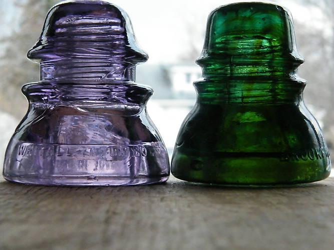 Found these two insulators yesterday at two different antique shops. Although the purple Whithall Tatum is cool, the Brookfield CD 152 that has an extended inner skirt is my favorite find. That detail a first that I have found in a basically yellow green color. This insulator also has some very nice amber swirling and seperation of coloring in the dome where it is blue aqua. What can't be seen very well is the fair amount of snow particals skattered around. Anyone interested in buying this one will find it in the for sale ablum soon with more details. To see the previous extended skirt insulator I posted click here [id=261250457] |