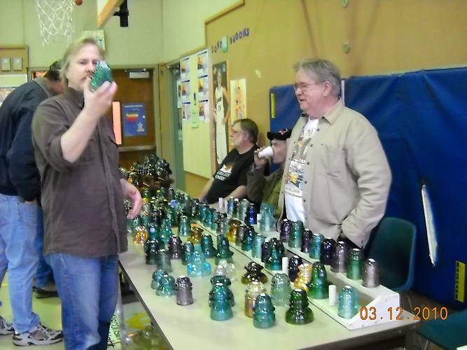 Brad checking out insulator at Chuck Irwin's table in the background Steve and Jim C