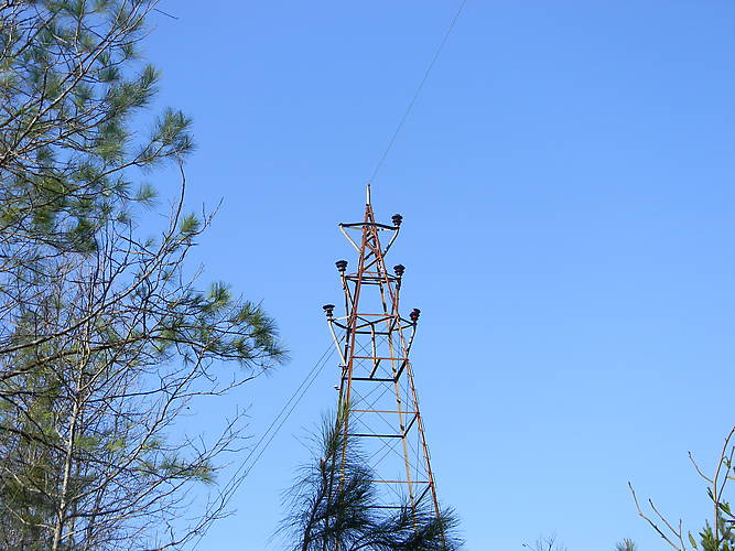 Here is a tower with multipul M-3471s on it still. There are also 4 porcelain insulators on the tower on the Left side. They are possibley U-259 Fred Lockes in White.