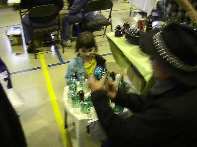 Here is young insulator collector Nicole Culver at her table. Nicole is the youngest insulator dealer at the age of 4 years old. At the 2011 Emerald City show she bought, sold, and even traded insulators. She had brisk sales from the moment she set up all through the day. Nicole has been collecting insulators for 2 years and specializes in mini's. Nicole was trying to raise money for a membership at Disney's on-line game web site. She sold her own insulators from her collection and a portion has been used for her membership at the Disney site. Nicole also thanks all the great collectors who purchased or traded insulators from her at the show. |