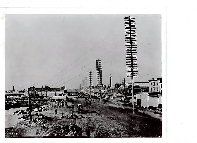 Scene on West Street in NYC around 1888. AT&T Archive # 1458