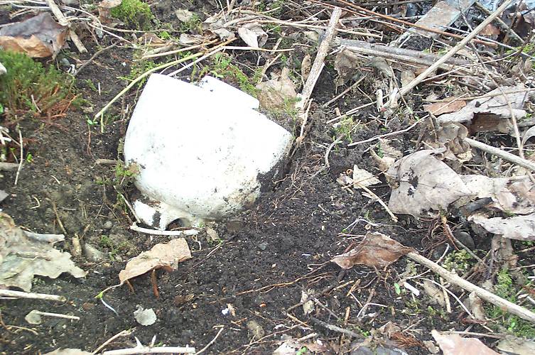 On the Albany- Hudson interurban near Kinderhook, N.Y. Had it not been early spring with the brush not grown up yet I would never have found it. It turned out to be a basically mint insulator. It is interesting to note that most of the Boch insulators were made from all dry process parts on this line |