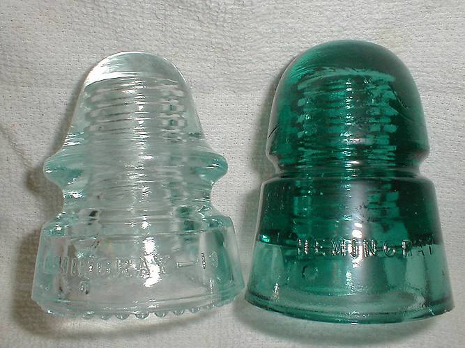 The more I looked the better the glass became! CD 162 Hemingray-19 in ice blue and a CD 145 smooth base Hemingray with no rear skirt embossing.