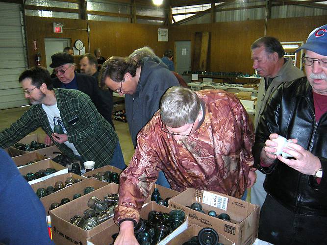 Sorting through Bob Stahrs boxes. Bob moved a lot of glass.