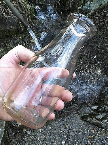 The most unusual find of the day was this unmarked one-pint milk bottle. It was half-buried in the mud at the bottom of the rail grade fill and I really shouldn't have seen it (Mr. Magoo is a hawkeye compared to me). Since my wife collects old bottles, this'll help justify the "time well spent" factor of my wild insulator hunts. |