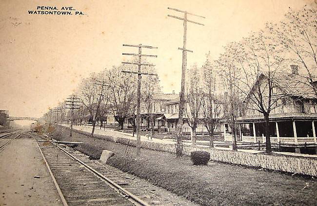 The telegraph route was strung along the eight-pin crossarms nearest to the track. Telephone service to subscribers in the vicinity ran along the two longer crossarms atop the line to the right (along the right) and quite possibly electric lighting service was provided by the circuit on the smaller crossarm, beneath. |