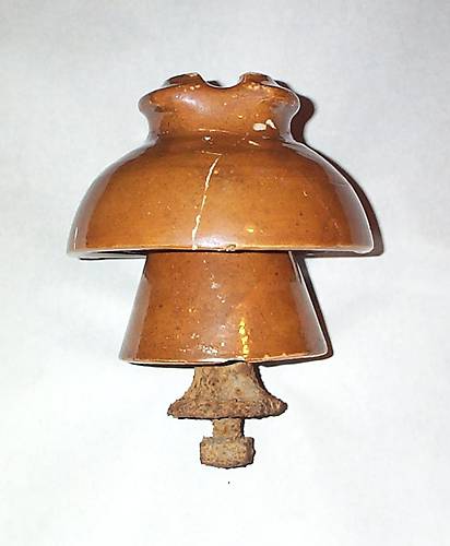 On my way back from doing a hunt with Tracy Schaff early this week I stopped off to look at an intresting sight of an old sub station in a remote location I am not yet disclosing.... There was a small dump of random old multiparts and in amongst them I found three marked Fred Locke M-2250 multiparts!!! All were frost damaged and cracked but basically whole or complete. This was the best of the three . the other two had damaged inner skirts that were badly cracked . Since I have a pile of mint skirts available for them I may replace there skirts the pin is also interesting ... obviously these were out of service for many years... considering that only four or five others of these have ever been found by collectors, This counts as a major find of these!!!! |
