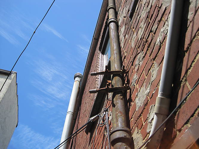 Odd use of brackets in an alley.