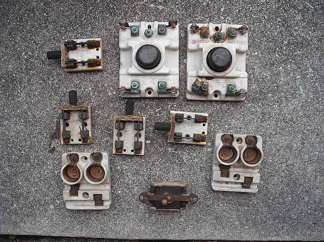 The whole lot, as shown. Switches, fuse holders, and whatever! Use 'view original' to see markings. Top center and right are Western Electric items. $13 plus $11 postage to your door. More to follow.