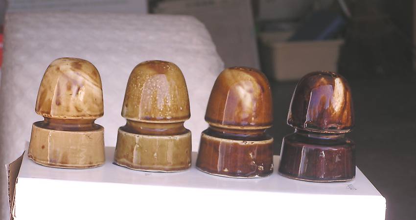 here is a grouping of, I believe Pittsburg-style, porcelain beehives. Crude glazing. Three to the right are marked N.A.T.CO. Next photo [id=307653388]