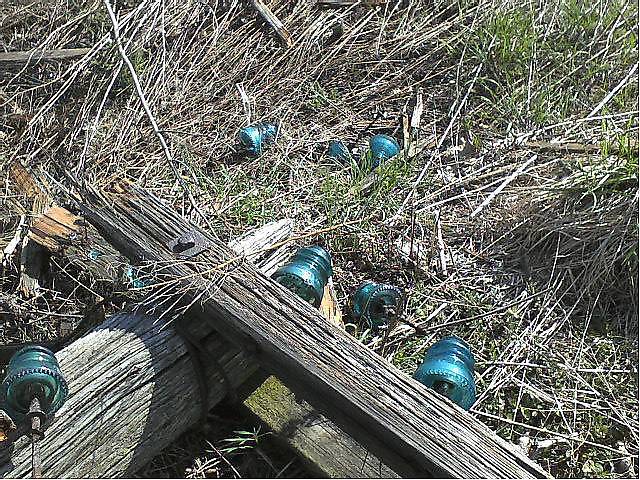 Against my doctor's orders, I felt a walk in the woods was what I needed. We didn't find anything too spectacular, but brought home a few CD 155's for my wife to paint characters on and one blue Hemi-42. Every other pole in this locale was loaded with Brookfield beehives, and when I saw this downed soldier from a distance I thought I'd hit the jackpot! Well... not today. Most of these were undamaged, but I only took the one in the lower left corner as it has SDP's. |