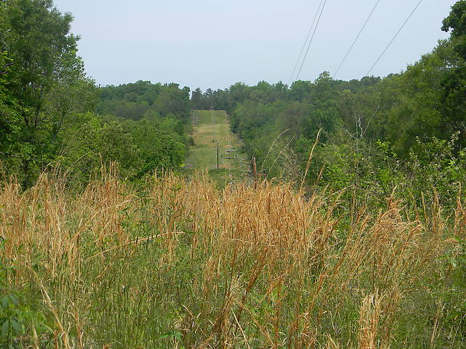 Some of the towers have been replaced by wood poles, mainly when passing over roads.