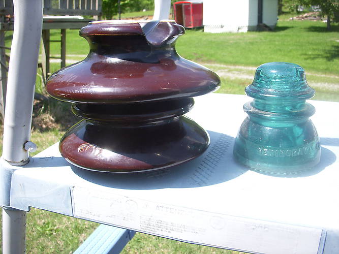 Picture number two of the U-875 Ohio Brass Insulator. The CD 154 is for size comparison.