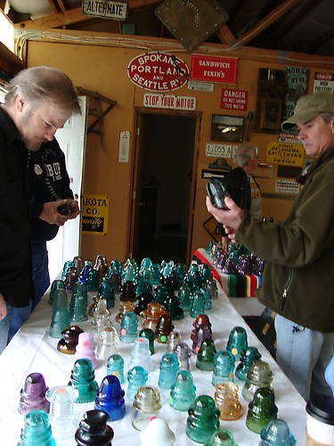 Brad Dahlquist and Tom Casey do some Shopping at Jim and Mae Barstow' s table.