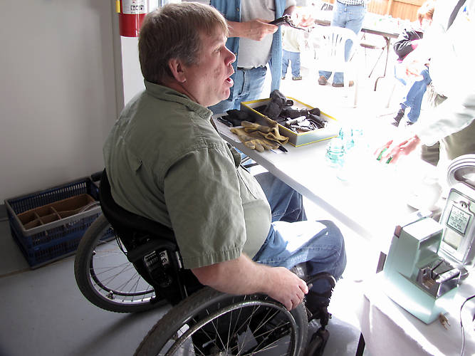 Rob Gilkerson had a crowd gathered around him, and had sold more than half of the 20 or 30 combination knives he had brought before he even had the chance to get in the door and set up his table. How can you beat $5.00 each or 3 for $10.00 for "like new' Schrade, Leatherman and Craftsman combo knife sets. He also had good deals on his insulators. He says he's bringing more knives next year. |