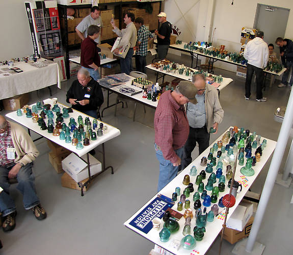 Bob Bunker and Mike Miller admiring some of the nice glass on Jack Riesselman's table