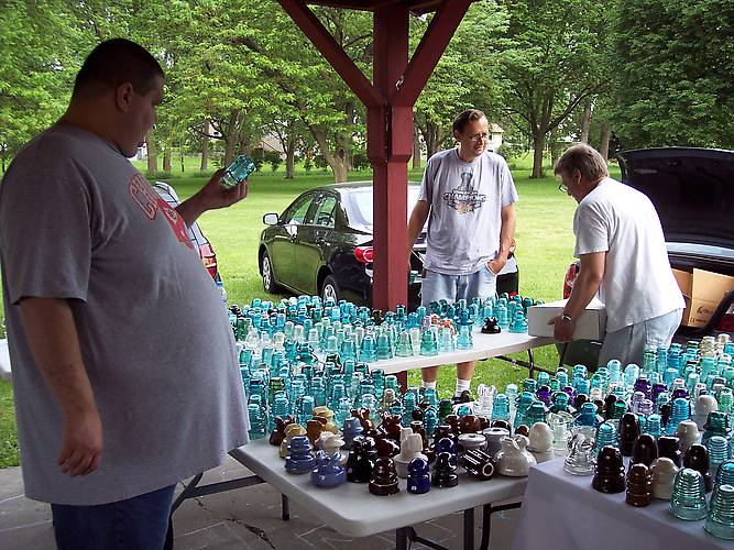 Boone Jeffers looking over selection on Andy Wadysz's sales tables.