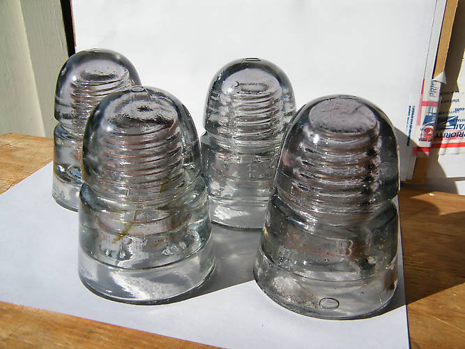 Found these four light puple B's in a vendors crate at the flea market I go to religously just about every Sunday. It's my belief these originated off the West Shore Line located upstate NY. I was pleased after cleaning them to find at least one had some olive stringers or squiggles. The seller said I puchased insulators from him in the past but I didn't recall. I will B for sure looking in the next crate he promised to bring next week. To see the other insulators I picked out of the same crate [id=313150435]. |