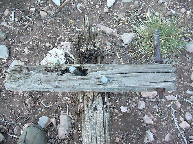 I have found a second line made up of wood poles and a single SHORT cross arm with two pins. These poles run very close to the Childs line and I have picked up poles on Mingus with metal pins and as far away as 20 miles down Dugas road off of I-17 and even found the insulator from this line today, The pins on this pole were wood. |