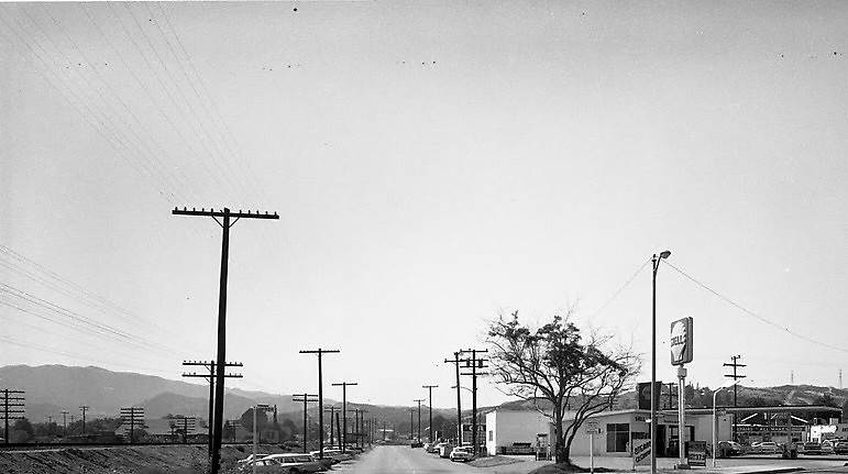 Open wire everywhere you can see! From the left are a couple long runs of RR openwire while towards the right most likely are telephone circuits. WOW in my opinion for July 1969 for *exactly* when this picture was taken, we were landing a man on a moon!! Photo taken near the intersection of San Fernando Road and Railroad Avenue in Santa Clarita, CA. |