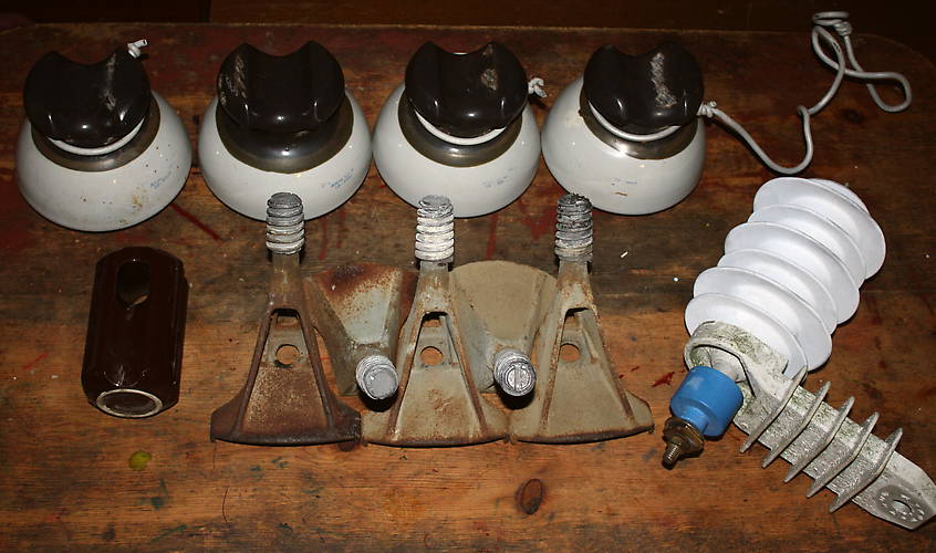 Well, after what seemed like forever, I finally found some linemen who were willing to give me some insulators that they'd pulled out of service. All I had to do is try asking in a different county. I think I did pretty well with what I got and really like the angle pins, which I had been wanting to get for a while. The johnny ball is a smaller version of the big one I have in my collection. |