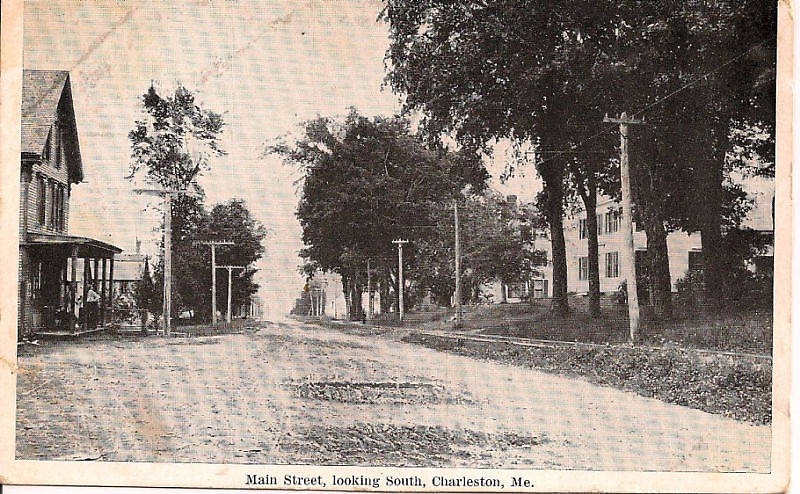 Openwire phone lines on the left and probably early electric distribution (primarily lighting service at that time) along the right of the unpaved, dusty road that went through this sleepy Maine village a century ago.....