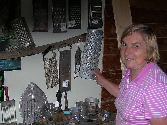 This is Eva Loranger. Eva is originally from Prague, and Eva is a fantastic cook. Eva collects cooking gadgets and kitchen paraphenalia, and has amassed an interesting collection of "Kitchen Thingies". The story is that when Eva married Ray 43 years ago, he was just a skinny little guy, but in the years since, Eva has managed to put some meat on his bones, and has fattened him up a little bit. Eva does all the cooking at the Footloose Caboose Lodge, and based on the comments of everyone present at the show, the food was "to die for" If you are on a diet, stay away from Eva's cooking, it is that good. The Lodge offers a wonderful and varied food menu and a very nice wine list. And everything is prepared by Eva, and served in an authenticly restored air conditioned Canadian Pacific Railroad Dining Car. While I was visiting the Lodge and attending the Insulator Show, there were numerous local folks stopping in for one of Eva's "Home Cooked" meals, and it seemed that Eva's Dining Car was always busy. Many of these folks also wandered around to check out the "Insulator Collectors" tables and ask questions about the hobby. I thoroughly enjoyed my visit to the Footloose Caboose, and the chance to visit with Eva on her home turf. She has a wicked sense of humour, and it is a lot of fun to hear her telling of Ray's collecting escapades. it seems there are lots of stories, each funnier than the last. Eva, Thanks for a great time and for the wonderful food, and I'm already looking forward to your next July 2012 Footloose Caboose Insulator Show. Y'all should plan to join us in 2012. You'll enjoy the experience. |