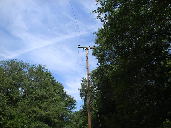 The pole shown has an arm that replaced the wishbone bracket. All 3 of the insulators are two-part OB mutliparts.