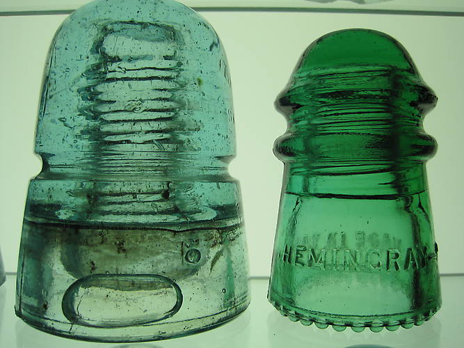 I was told the big bubble CREB CD 145 was found on a RR line in Indiana around 40 years ago. The CD 106 Hemingray is unusual. It looks green/yellow green two tone? It doesn't really look aqua/green two tone. Has anyone seen this color combo before in a CD 106 Hemingray? |
