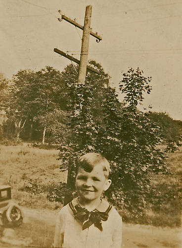 Nice open-wire secondary drops on this one also with a classic 10-pin, heavily creosoted crossarm underneath for open-wire telephone service by the New England Telephone and Telegraph Company (NET&T.Co) Those crossarms were designed/specified by Ma Bell to last forever. Near one of their ends *always* was a NET&TCo. pole tag.. I remember LOTS of them as a kid living in nearby Brockton, MA in the 1960s. All of the NET-Brockton, MA-district's open-wire primarily was on side streets and replaced by paired cable by 1966. It *sure* was fun looking through the piles of insulators behind NET's headquarters smelling all of that creosote behind their S. Main Street, Brockton construction department facility back then! BTW there are still some of NET's vintage and sturdy crossarms still faithfully surviving (from many decades ago!) supporting Verizon and Comcast cabling where more space from the pole towards the street has been needed. And those arms (and sometimes having pins) look like they are in great shape too ;-) PS..I have no idea who the smiling kid in this photo is. I really wish it was me back in those great days ;-) Joe ++++++++++++++++++++++++++++++++++++++++++++++++ |
