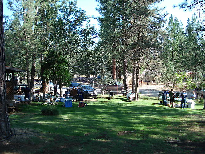Ken's spacious front yard almost swallows up the tables and collectors. We couldn't have asked for a better day. The temperature was in the 80's, the breeze whispered in the pines, and a good time was had by all.