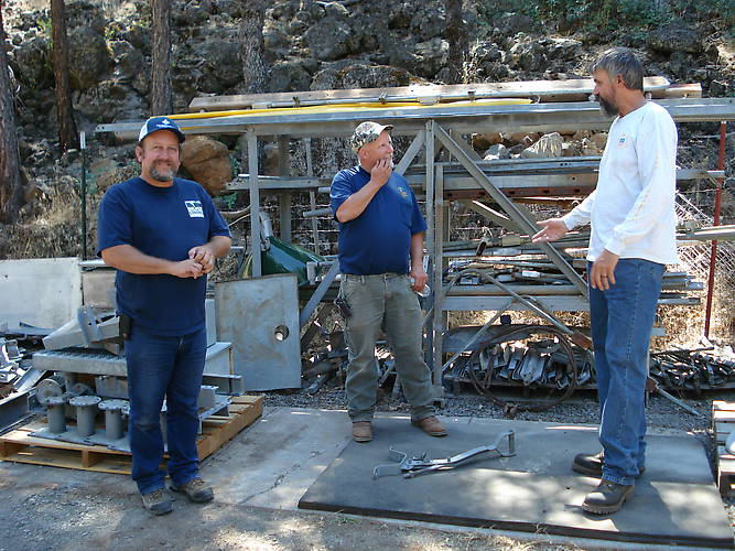 Gary Yarborough (right) explains to Ken Klein how to do "that one thing" with a metal lever. Bill Rohde (left) has heard it all before, and waits smugly while the Sherpas continue to load boneyard goodies into his truck.