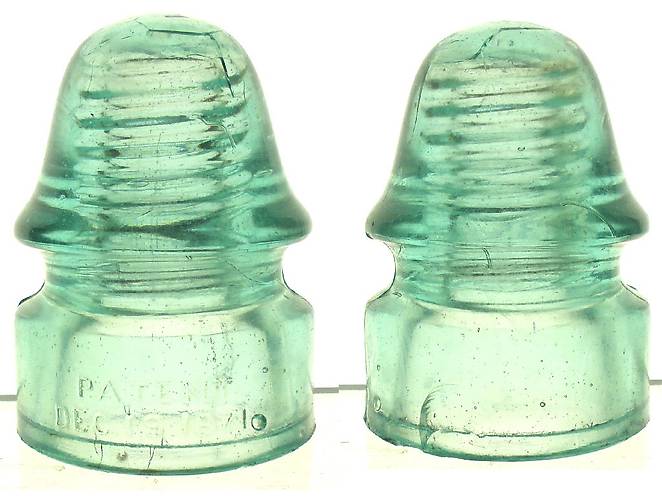 Nice, early signal in light aqua. Embossed only Patent Dec 19. 1871. Has a shallow scallop at base edge to rear side as shown. Dometop has an annealing hairline to mention from when the glass cooled. Use view original. Displays great from front. $13 + shipping. |