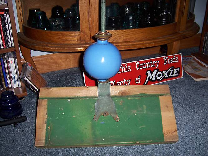 One Of The Oldest Blue Milk Glass Lightning Balls & Hardware