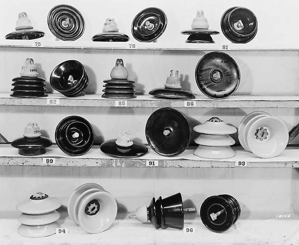 Photo from the Huntington Digital Library (undated). There are 7 photos showing 96 different insulators tested. Southern California Edison Collection of Photographs, Courtesy of the Huntington Library, San Marino, California. For future reference, the first photo in this series can be found here: http://hdl.huntington.org/cdm/singleitem/collection/p16003coll2/id/28961/rec/11 |