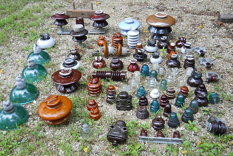 A friend of mine made a great find recently and passed it along to me. I have mostly glass insulators and had always wanted one of those big blue glass discs. Now I have FOUR! And how about that large birds-egg blue porcelain in the back...has a manufacture date stamp of 1931. How about you...which one do you like the best? |