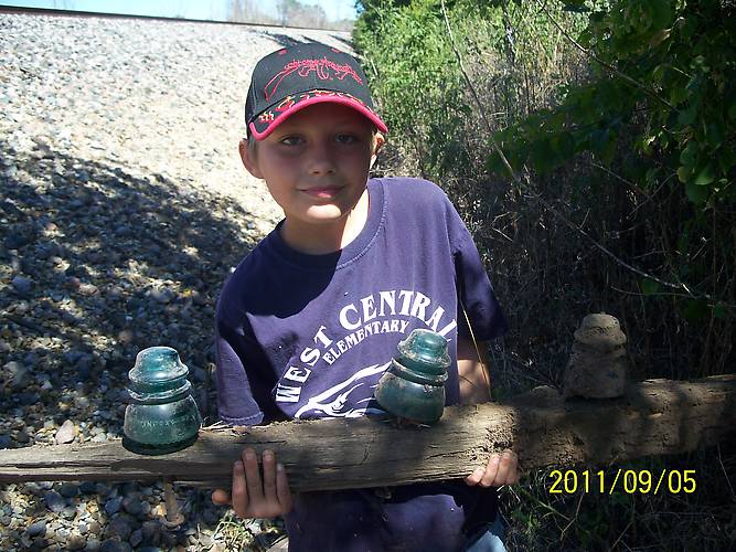 My son with his treasures.
